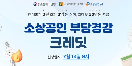 소상공인 50만원 지원금 부담경감크레딧 지원 신청 홈페이지
