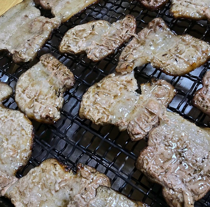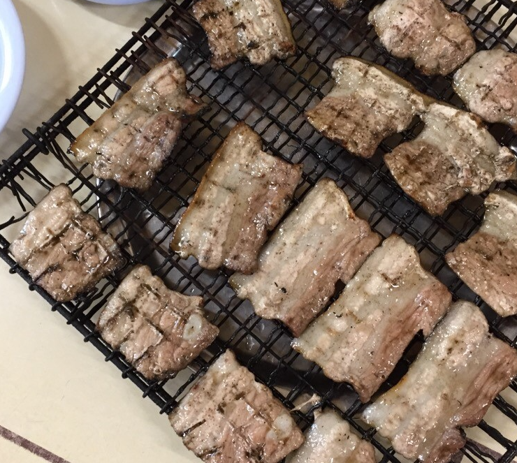이렇게 구워낸 삼겹살은 얇게 썰어 여러 겹 겹친 뒤, 주문과 동시에 불판 위에 올리고 손님의 눈앞에서 더 자를 수 있도록 내어줍니다. 일체의 양념이나 첨가물 없이, 오로지 좋은 고기와 볏짚의 불맛, 그리고 오랜 시간 쌓인 노하우만으로 그 집만의 풍미를 만들어 냅니다. 그 불향 머금은 고기를 입에 물고 한 입 베어 물면, 겉은 바삭하면서 속은 촉촉하고 부드럽게 어우러지며, 짚불 특유의 고소하고 그윽한 불내음이 입안을 감돕니다.