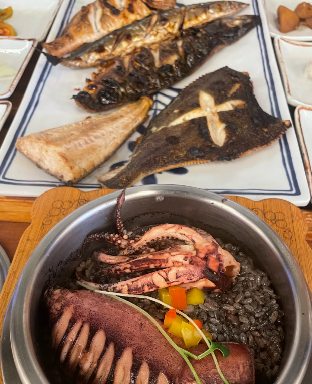 화덕에서 생선을 직접 구워 바삭한 껍질과 촉촉한 속살을 즐길 수 있는 점이 최대 강점입니다. 다양한 종류의 솥밥(영양, 곤드레, 오징어먹물 등)과 함께 한상차림으로 제공되어 든든하며, 반찬