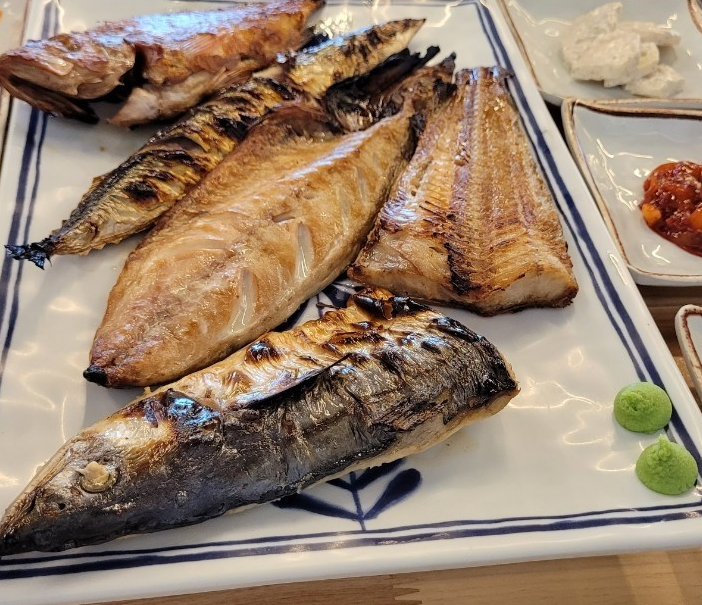 화덕에서 구워내 기름기가 싹 빠진 생선구이는 고등어, 삼치, 임연수 같은 친근한 어종부터 제주산 통갈치까지 두툼하게 준비되어 골라 먹는 재미가 있습니다. 따끈한 솥밥을 한 숟가락 뜨고, 잘 구워진 생선을 쌈에 싸 한입 넣으면 바닷바람과 화덕 불향이 한데 어우러진 풍미를 느낄 수 있습니다.