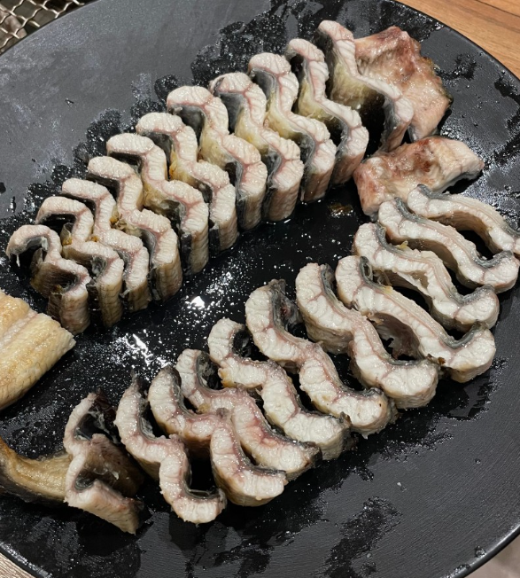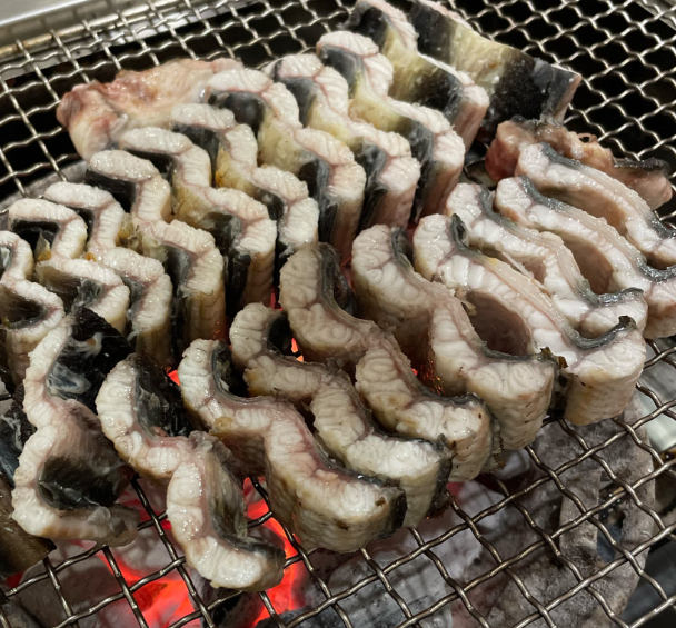 이 집에서는 전라도 토종 품종인 100% 자포니카(풍천장어)만을 고집하는데, 이 장어는 푸른빛을 띠는 등과 하얀 배, 그리고 일반 장어에 비해 주둥이가 길다는 특징을 지니고 있어, 식감과 감칠맛이 뛰어나 최상의 품질을 자랑합니다. 매일 신선한 장어가 식당에 도착하면, 얼음물에 잠시 담가 신속하게 기절시킨 후 꼼꼼하게 손질을 시작합니다. 이렇게 전처리가 끝나면, 첫 번째 단계로 오븐에서 구워내어 장어 특유의 기름기를 살짝 빼주고, 담백한 식감을 극대화합니다. 이어서 할머니는 특별히 시아버지께서 짚 공예가였던 연고로 넉넉히 준비된 볏짚을 활용하여, 두 번째 단계로 짚불 훈연을 진행합니다. 이 과정에서 은은하면서도 풍부한 불향이 장어에 배어, 맛과 향 모두 남다른 깊이를 더하게 됩니다. 마지막으로, 훈연된 장어는 손님상에 나가기 직전 숯불에 올려 한 번 더 구워내어 겉은 바삭하고 속은 촉촉한 식감이 극대화됩니다. 이처럼 세 번에 걸친 조리 과정을 통해, 번거롭고 손이 많이 가는 작업임에도 불구하고 할머니는 늘 최고의 맛을 지키기 위해 쉽지 않은 공정을 고집합니다.