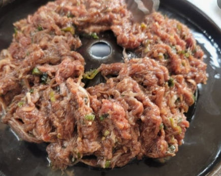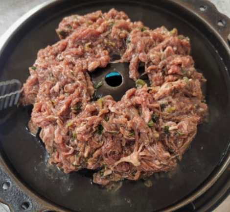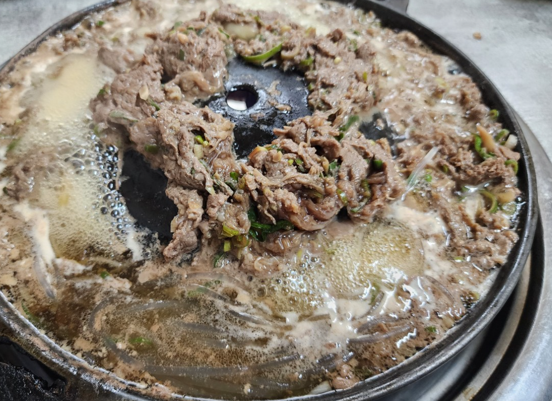 불고기의 고기는 하루 이상 정성스럽게 숙성시킨 100% 국내산 한우만을 사용하며, 한 점 한 점 정갈하게 썰어 담아냅니다. 상 위에 올려진 불판 위에 먼저 육수를 붓고, 불고기를 펼쳐 올리면 고기의 은은한 향과 육수의 깊은 맛이 어우러지며 입안 가득 풍미가 퍼집니다. 중간중간 당면사리를 추가해 익혀 먹거나, 다 익은 고기를 밥에 얹어 불고기비빔밥처럼 먹는 것도 인기 있는 방식입니다.
