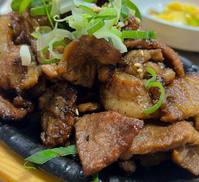 이 집의 돼지불백은 일반적인 양념 돼지불고기와는 차별화된 맛을 지니고 있습니다. 먼저, 고기는 주문과 동시에 숯불 위에서 직화로 구워지며, 은은한 불향이 고기에 자연스럽게 배어들게 됩니다. 양념은 짜지도 달지도 않으며, 단짠단짠의 황금비율로 배합되어 감칠맛이 뛰어납니다. 특히 양념이 고기에만 국한되지 않고 쌈밥에 어울리도록 적당한 농도를 유지하고 있어 고기와 밥, 쌈 채소가 하나의 완성된 맛을 이루게 됩니다.