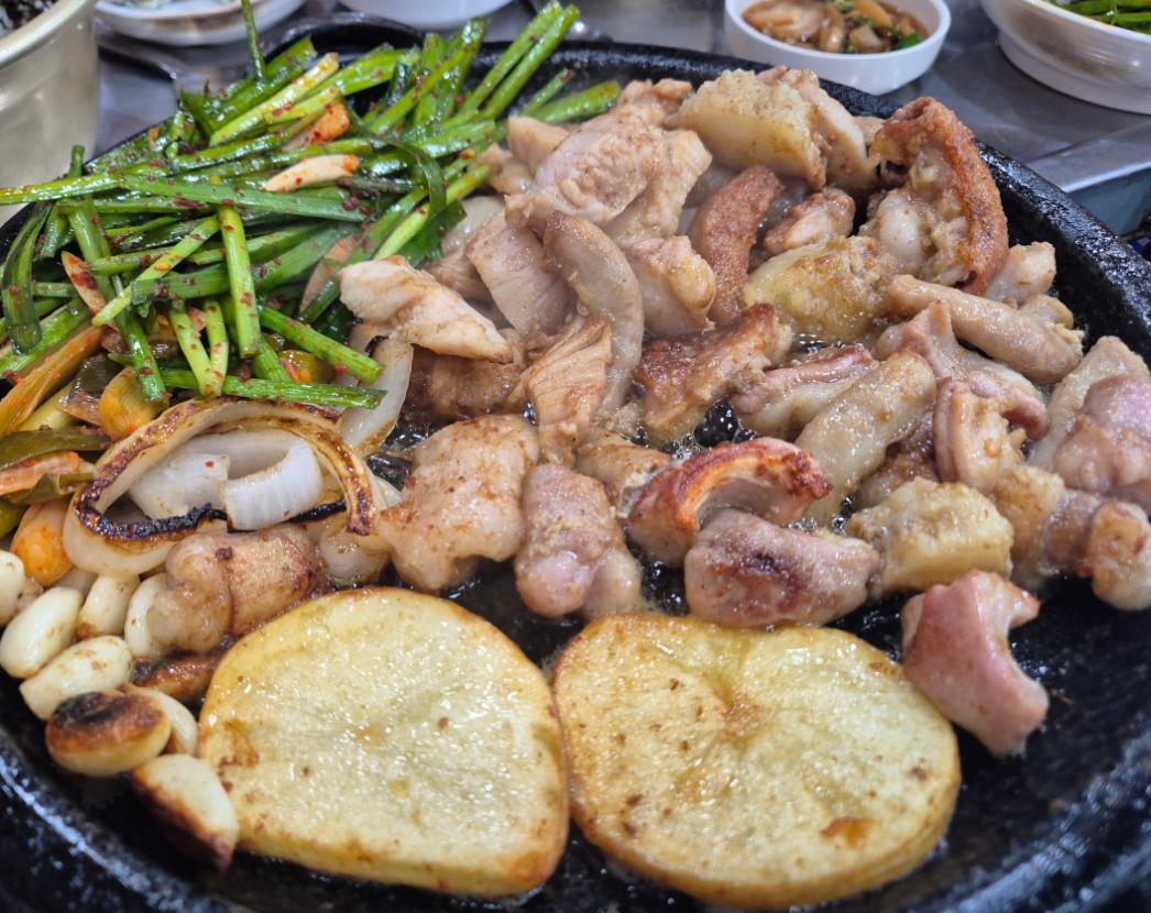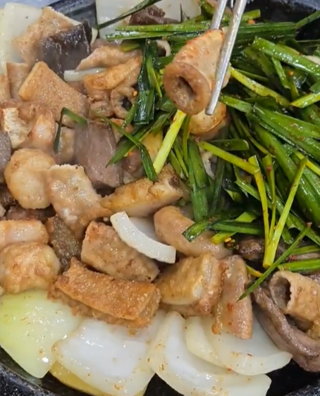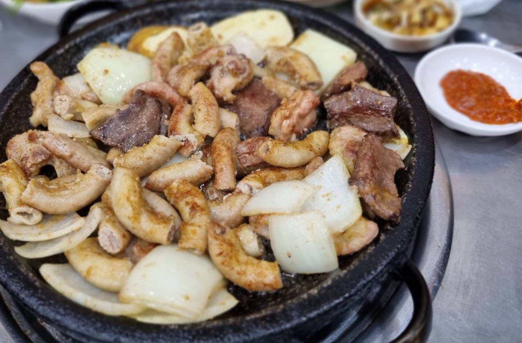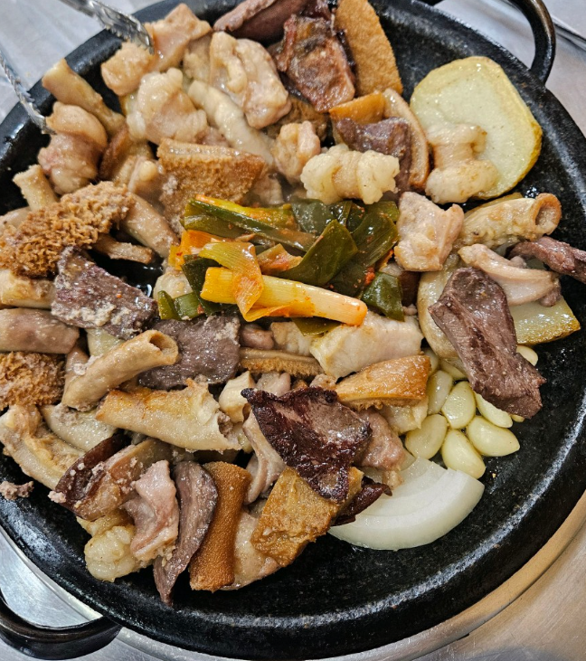 이 식당의 또 다른 인기 메뉴는 이름부터 호기심을 자극하는 ‘삼지창’입니다. 일부 손님들은 그 무시무시한 이름에 당황하지만, 실제로는 소곱창, 막창, 대창을 한 번에 즐길 수 있는 ‘모둠 구이’ 메뉴를 의미합니다. 각각의 부위는 식감과 풍미가 다르기 때문에 세 가지 부위를 한 번에 맛볼 수 있다는 점에서 많은 손님들의 사랑을 받고 있습니다.