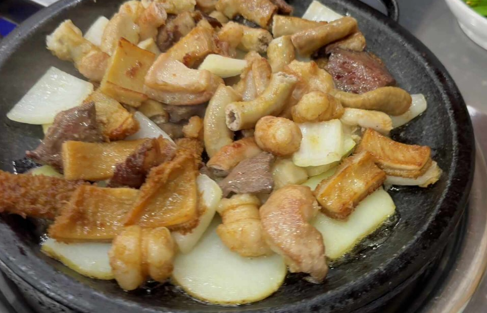 모둠 구이는 주인장의 사위가 조리 담당을 맡고 있습니다. 직접 숯불 위에 고기를 구워내며, 각 부위의 특징을 살리는 데에 주력합니다. 곱창은 쫄깃하고, 막창은 담백하며, 대창은 고소한 기름 맛이 일품입니다. 세 가지 부위를 골고루 익혀 먹으면 식감의 조화와 풍부한 맛이 살아나면서 씹는 즐거움을 선사합니다.