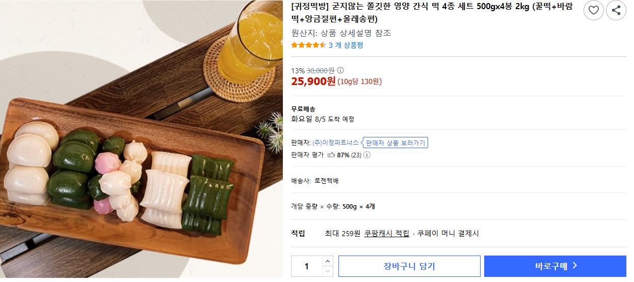 생방송투데이 꿀떡 택배 아래쪽에서 주문하세요