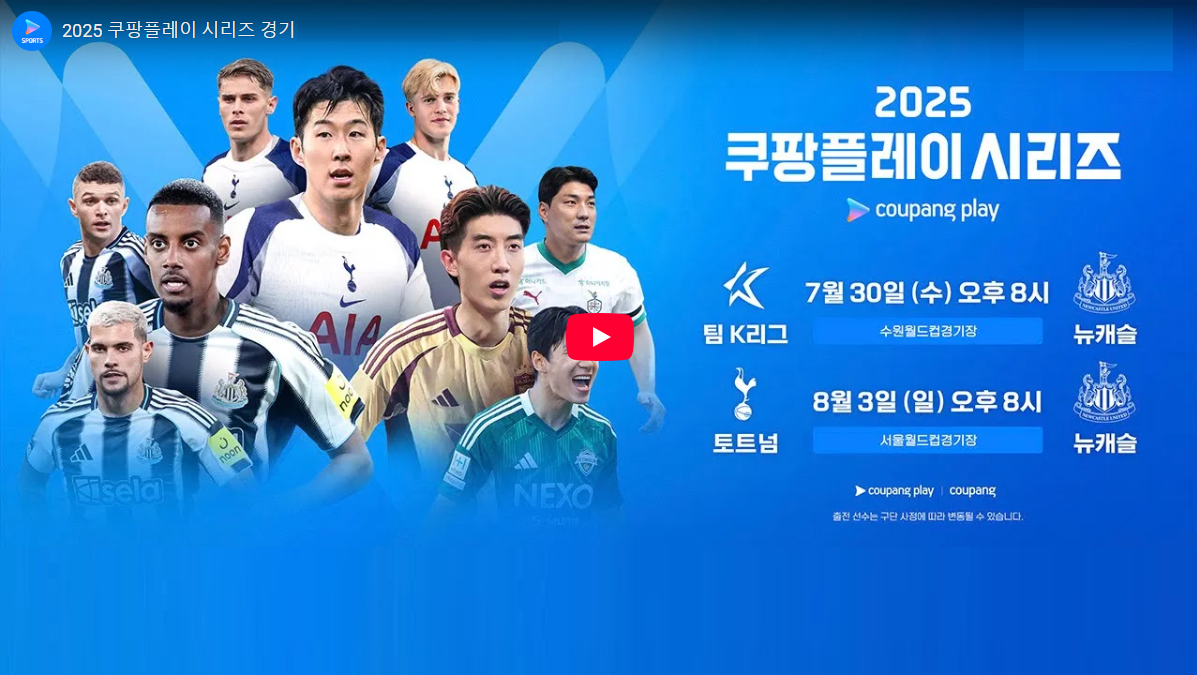잉글랜드 프리미어리그 토트넘 홋스퍼가 한국 팬들을 위해 다시 한 번 방한합니다. 오는 8월 3일 오후 8시, 서울월드컵경기장에서 열리는 쿠팡플레이 시리즈 두 번째 경기에서 토트넘은 뉴캐슬과 맞붙습니다.이번 경기는 특히 더 큰 관심을 받고 있습니다. 바로 ‘토트넘 손흥민’이라는 이름이 붙을 수 있는 마지막 경기일 수도 있기 때문입니다.이번 2025년 08월 03일 토트넘 홋스퍼 FC 뉴캐슬 유나이티드 FC 내한 경기 토트넘 뉴캐슬 중계 는 쿠팡플레이로 방송이 되는데요