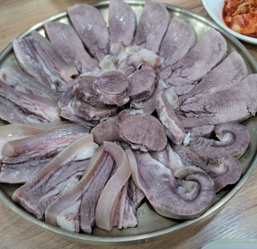 이곳의 또 다른 인기 메뉴인 소머리수육은 촉촉하고 부드러운 식감이 특징이며, 수육 자체만으로도 충분한 만족감을 제공합니다. 함께 곁들여 제공되는 깍두기, 오이지, 멸치볶음, 다진 양념과 새우젓 등 정갈한 반찬들도 국밥의 맛을 더욱 돋보이게 하며, 특히 깍두기의 시원하고 진한 맛은 계속 손이 가게 만드는 매력을 지닙니다