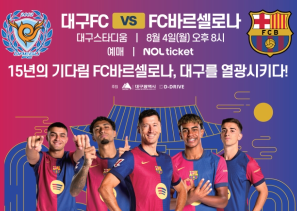 스페인 명문 축구 클럽 FC 바르셀로나가 대구FC와의 친선 경기를 펼칩니다.이번 경기는 2025년 8월 4일 대구스타디움에서 열리며, 바르셀로나의 아시아 투어 마지막 일정으로 예정돼 있습니다.지난번 fc서울과의 경기에서 정말 어나더 레벨이라는 것을 제대로 보여주었는데요 이번에 대구fc는 서울fc 와 바르셀로나 경기를 보고 어떤 대비를 하고 나올지 기대해 보시기 바랍니다 대구fc 바르셀로나 중계 시청하시기 바랍니다 대구fc 바르셀로나 아래를 통해서 시청하시기 바랍니다