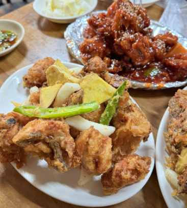 매장 내부는 소박하고 아담한 분위기입니다. 테이블 수는 많지 않아 자리가 빨리 차지만, 그 덕분에 오래 머물기보다 치킨의 맛에 집중하게 됩니다. 반반 메뉴 대자는 양이 넉넉해 3명 이상이 함께 먹기에도 충분하며, 가족 단위나 친구 모임, 시장 나들이 중 간식 겸 식사로 즐기기에 좋습니다.