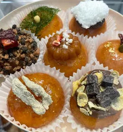 또 하나의 인기 품목은 바로 ‘개성주악’입니다. 개성주악은 조선시대 궁중 음식이자 전통 잔칫상에 빠지지 않던 음식으로, 찹쌀 반죽을 막걸리로 숙성시켜 기름에 튀겨낸 다음 조청을 입혀 완성하는 전통 한과입니다. 이곳에서는 그 전통적인 방식에 현대적인 감각을 더해 재해석해내고 있는데, 겉은 바삭하고 속은 쫄깃하며, 조청의 은은한 단맛이 어우러져 깊은 풍미를 자랑합니다.
