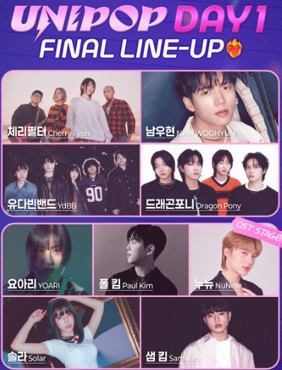 올해 ‘가요대전 썸머’의 또 다른 특징은 ‘UNIPOP(유니팝)’ 무대였습니다. 이는 K팝을 넘어 모든 장르를 아우르는 공연으로, 밴드 터치드가 미공개곡 ‘Ruby’를 공개했고, 너드커넥션이 ‘좋은 밤 좋은 꿈’과 ‘딱 네 잔’으로 감성을 더했습니다. 데이브레이크는 ‘들었다 놨다’, ‘좋다’로 관객과 하나 되었으며, 체리필터는 남우현, 드래곤포니, YB와 함께 ‘오리날다’ 스페셜 무대를 꾸몄습니다. OST 스테이지에서는 솔라, 샘 킴, 권진아, 나윤권, 요아리가 SBS 대표 드라마의 명곡을 새롭게 해석해 추억을 불러일으켰습니다.