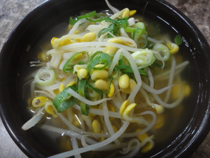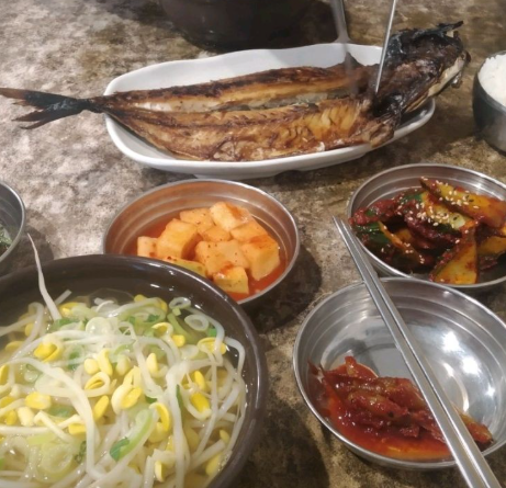 고등어구이의 인기가 워낙 높지만, 이 식당의 숨은 강자는 바로 3000원 콩나물국밥입니다. 팔팔 끓는 뚝배기 속에 시원한 국물이 가득하고, 아삭아삭한 콩나물이 듬뿍 들어 있습니다. 국물은 멸치와 다시마, 무를 넣어 우려낸 시원하고 깔끔한 맛이 특징이며, 얼큰함을 원한다면 다진 청양고추와 고춧가루를 곁들여 먹을 수 있습니다. 여기에 달걀 한 알을 넣으면 부드럽고 고소한 풍미가 더해져, 추운 날씨에 온몸이 녹아내리는 듯한 기분을 느낄 수 있습니다.
