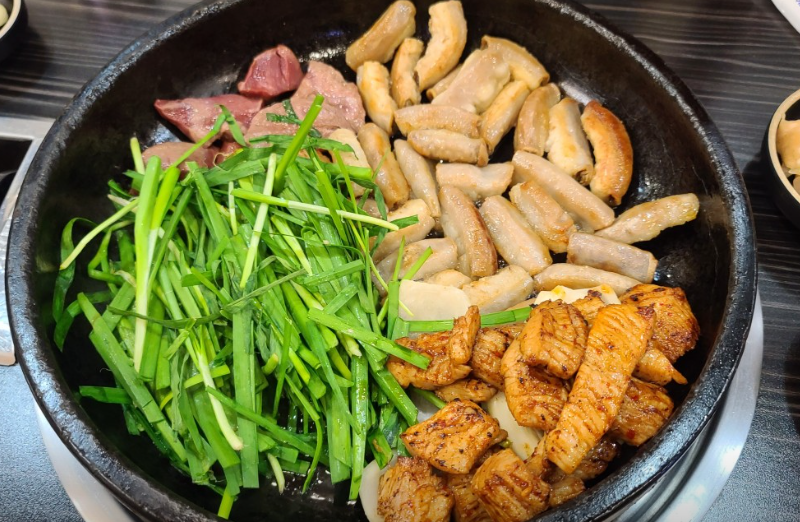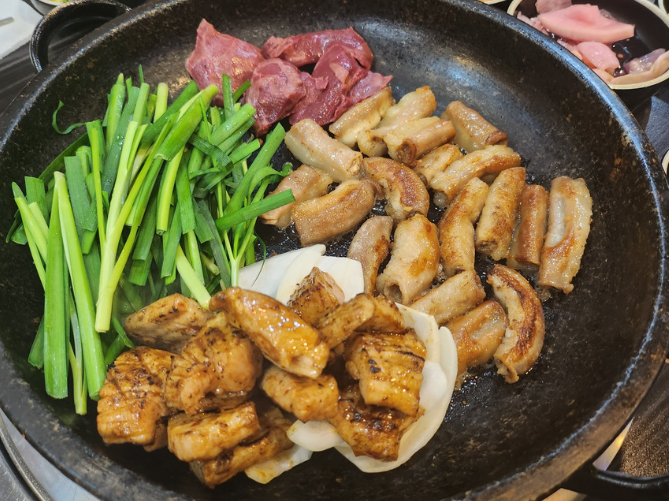 잡내를 좌우하는 실핏줄·막 제거, 지방 정리, 삼투압을 이용한 염지와 냄새 잡기 과정 등 하우스 레시피가 존재합니다. 둘째, 초벌과 재벌의 배합입니다. 숯향을 이식하기 위한 고온 단시간 초벌, 이후 손님상에서 기름을 빼며 결을 살리는 재벌로 ‘겉바속촉’ 질감을 극대화합니다.