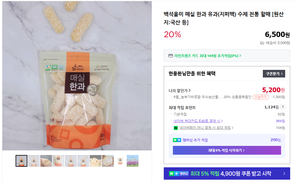 6시내고향 당진 매실한과 유과 과줄 택배 주문 백석올미마을