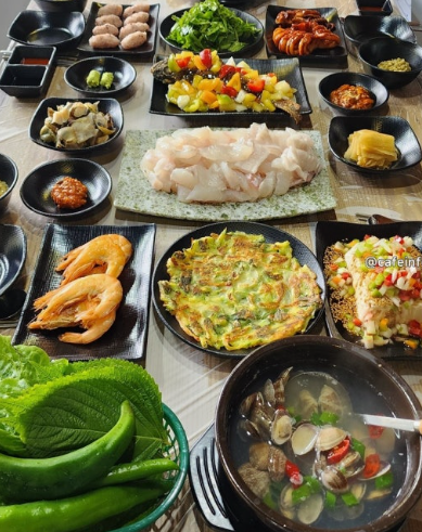 민박집에 들어서면 먼저 눈앞에 펼쳐지는 것은 다양한 해산물과 지역 특산물로 구성된 회정식입니다. 신선한 회는 물론 전복죽과 우럭 유린기까지 함께 나오면서 상다리가 휘어질 정도로 푸짐한 한 상이 차려집니다. 손님들은 바다 향 가득한 회정식을 즐기며, 하루의 시작을 활기차게 맞이할 수 있습니다