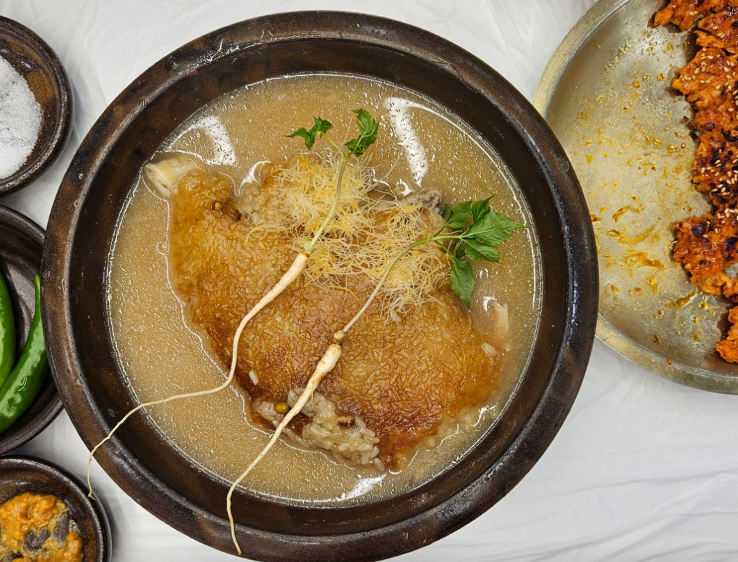 이 집의 닭백숙은 만드는 과정부터 정성이 가득했습니다. 압력솥에 닭 다리만을 따로 푹 끓여내 진한 육수를 먼저 만들고, 그 육수에 찹쌀과 녹두, 대추, 마늘 등 몸에 좋은 재료들을 아낌없이 넣는다고 합니다. 여기서 끝이 아니었습니다. 압력솥의 추가 흔들리기 시작하면 정확히 18분 동안 뜸을 들여 구수한 누룽지가 만들어지도록 하는 것이 이 집만의 비법이라고 하는데요. 이렇게 시간과 정성을 들여야만 비로소 깊고 진한 국물과 부드러운 닭고기, 그리고 고소한 누룽지가 완벽한 조화를 이루는 백숙이 완성되는 것입니다.