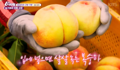 오늘 6시 내고향에 소개된 곳은 영덕의 깊은 산골에 자리한 한 과수원이라고 하는데요. 이곳에서는 수십 년의 노하우로 정성껏 복숭아 농사를 짓고 있다고 합니다. 농부의 땀과 자연의 선물이 더해져 최고의 복숭아가 탄생하는 것인데요. 방송을 보신 분들은 아시겠지만, 화면 가득 탐스럽게 열린 복숭아의 자태는 정말이지 감탄을 자아내게 만들었습니다. 보는 내내 입안에 침이 고여서 혼났습니다.