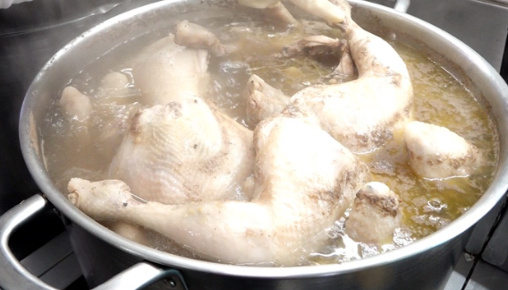 깨끗하게 손질된 닭이 식당에 도착하면 주방은 더욱 분주해지기 시작하는데요. 먼저 뜨거운 물에 닭을 한번 데쳐내 잡내와 불순물을 제거하고, 곧바로 찬물에 헹궈 핏물을 빼는 과정을 거칩니다. 그 후, 각종 약재를 넣고 끓인 육수에 15분에서 20분가량 초벌로 삶아준다고 하는데요. 이때 닭 껍질의 상태를 눈으로 직접 확인하며 최적의 익힘 정도를 판단하는 것이 오랜 경력에서 나온 맛의 비결이라고 합니다.