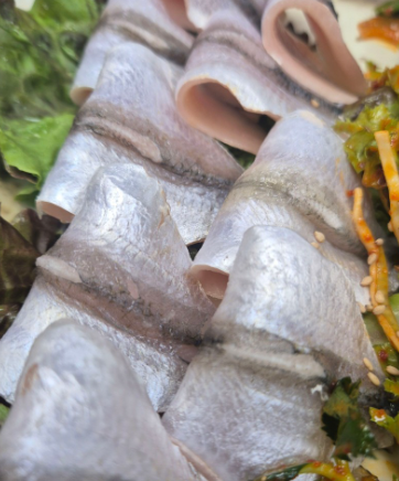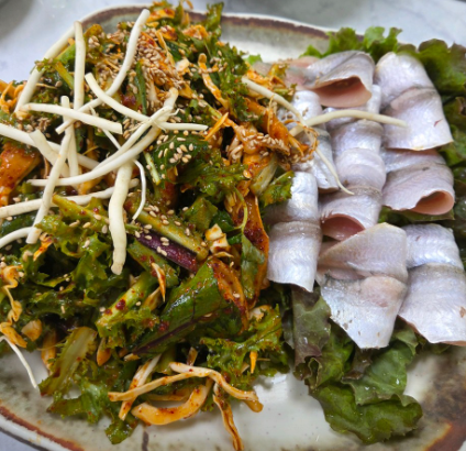 가장 먼저 등장한 것은 바로 싱싱함의 결정체, 밴댕이회였습니다. 갓 잡아 올려 은빛으로 반짝이는 밴댕이회는 비린 맛 하나 없이 입안에서 사르르 녹는 부드러움과 고소함이 일품이었다고 합니다. 이어서 새콤달콤매콤한 양념에 아삭한 채소를 듬뿍 넣고 조물조물 무쳐낸 밴댕이회무침은 사라졌던 입맛도 단숨에 돌아오게 만드는 마성의 매력을 뽐냈습니다.