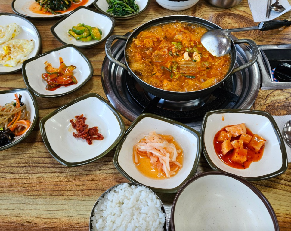 끓이는 방식도 특별합니다. 보통 청국장을 끓일 때 육수를 쓰는 경우가 많지만, 이곳은 물과 묵은지를 사용합니다. 묵은지는 사계절 내내 직접 담가두는 것으로, 오래 숙성된 김치의 시원한 맛이 청국장과 만나 묘한 조화를 이룹니다. 덕분에 국물은 깊고 시원하면서도 텁텁하지 않고, 마지막 한 숟가락까지 부담 없이 즐길 수 있습니다.