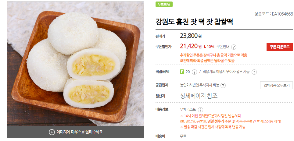 한국기행 홍천 잣떡 잣찹쌀떡 택배 아래쪽에서 주문하세요
