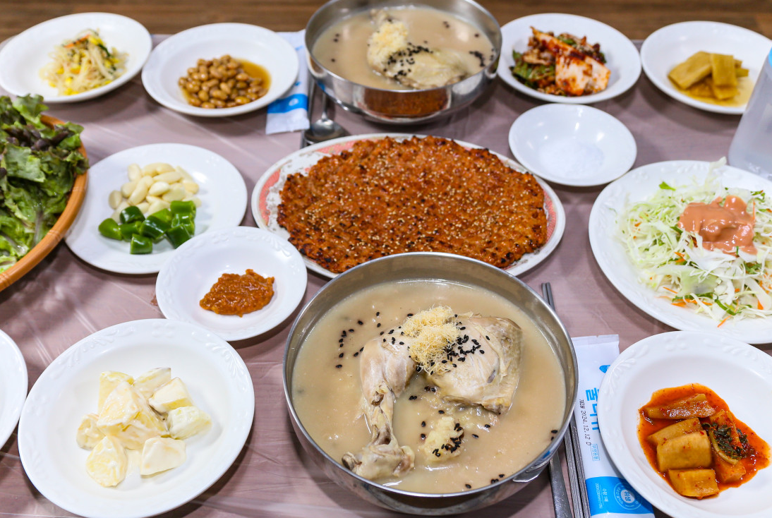또 다른 인기 메뉴는 닭백숙입니다. 속을 편안하게 해주는 맑은 국물에 푹 고아낸 닭고기는 담백하면서도 깊은 맛을 지니고 있습니다. 녹두와 찹쌀이 들어간 죽이 함께 제공되는데, 닭고기를 즐긴 후 남은 국물에 죽을 말아 먹으면 든든하고 깔끔한 마무리를 할 수 있습니다. 특히 닭백숙은 여름철 보양식이나 가족 단위 식사 메뉴로 인기가 높습니다.