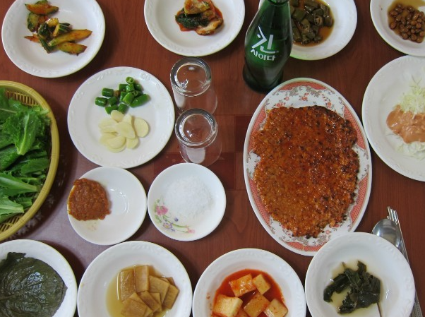 이곳의 강점 중 하나는 다양한 밑반찬입니다. 무장아찌, 사과샐러드, 배추겉절이 등 정성스레 준비된 향토 반찬들이 곁들여져 메인 요리와 조화를 이룹니다. 일부는 강한 향 때문에 호불호가 갈리기도 하지만, 전반적으로 지역적인 특색을 잘 담아내어 이 집만의 개성을 살리고 있습니다.