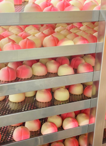 이 공장에서 하루에 생산되는 빵은 약 2만 개. 초당 약 1.5개의 속도로 빵이 탄생하며, 그 뒤에는 작업자들의 세심한 손길과 노력이 깃들어 있습니다. 빵 한 조각 속에는 단순한 재료가 아니라, 지역 농가와의 협력과 개발 과정에서 쌓인 정성이 녹아 있습니다. 원주 복숭아, 제주 바나나, 안동 사과 등 각 지역에서 공수한 신선한 재료는 특제 앙금으로 만들어 빵 속을 채우며, 한 입 베어 물었을 때 재료 고유의 향과 맛이 살아나도록 정성스럽게 조리됩니다.