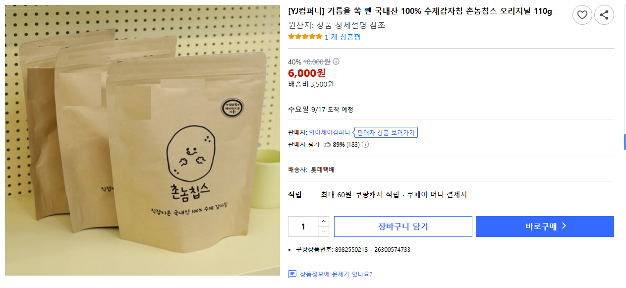 극한직업 수제감자칩 택배 주문 아산 촌놈칩스