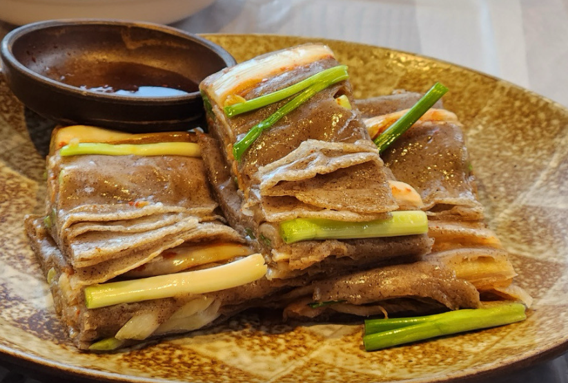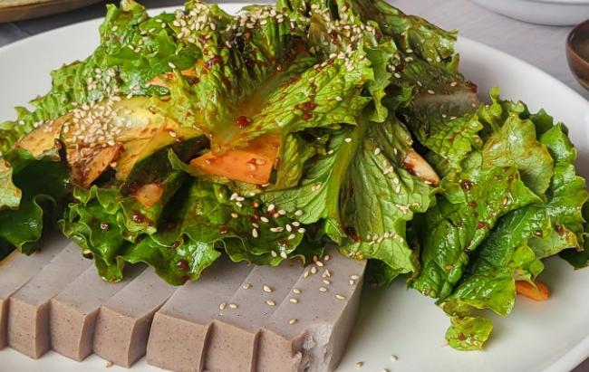메밀묵밥 외에도 손님들이 즐겨 찾는 메뉴가 있습니다. 바로 메밀묵무침과 메밀전입니다. 텃밭에서 직접 키운 채소를 넣고 버무린 묵무침은 아삭한 식감과 묵의 부드러움이 잘 어울리며, 과하지 않은 양념 덕분에 끝맛이 개운합니다. 메밀전은 오래 반죽을 치대어 쫄깃하면서도 겉은 노릇노릇 바삭하게 구워내는데, 씹을수록 구수한 맛이 살아납니다.