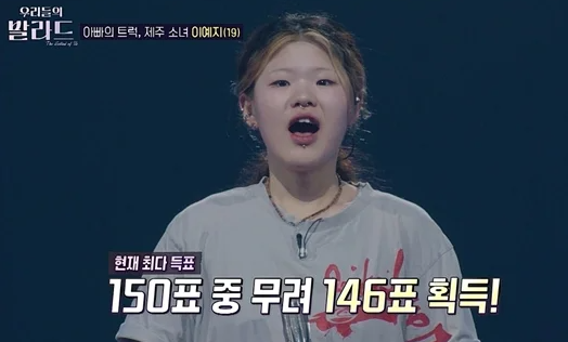 이예지는 아버지의 트럭을 타고 등교할 때 늘 듣던 곡인 ‘너를 위해*를 선곡하며 무대에 올랐습니다. 그는 무대에 오르기 전 “목표는 기립박수”라며 당찬 포부를 밝혔고, 특유의 거칠면서도 힘 있는 목소리로 노래를 불러 현장을 압도했습니다. 실제로 ‘탑백귀 대표단’은 전원 기립해 박수를 보냈고, 심사위원 차태현은 노래를 들으며 눈물을 참지 못하고 오열했습니다. 그는 “아버지의 모습이 곧 나였다”며 어린 딸과 함께한 추억이 겹쳐져 감정이 북받쳤음을 고백했습니다. 이예지는 총 150표 중 무려 146표를 얻어 극찬 속에 합격을 확정 지으며 첫 방송의 주인공이 되었습니다.
