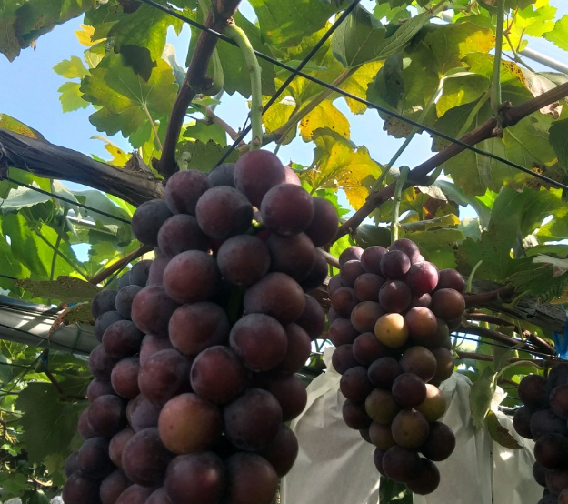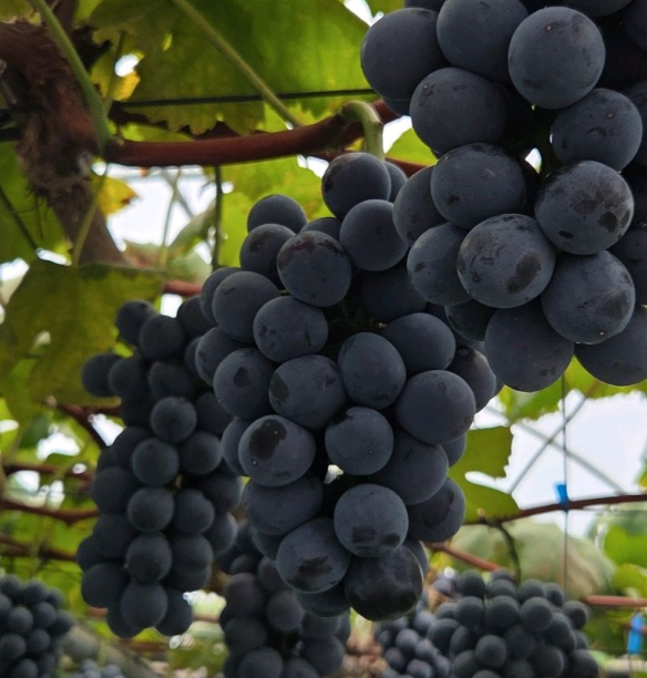 송산 지역은 오래전부터 과수 재배로 이름난 곳입니다. 특히 포도는 기후와 토양 조건이 잘 맞아 당도와 풍미가 뛰어나기로 유명합니다. 이곳의 포도는 낮에는 햇살을 듬뿍 받고, 밤에는 서늘한 기운 속에서 자라 자연스럽게 당도가 높아지고 과육은 단단해집니다. 그래서 한 송이만 따서 입에 넣어도 껍질이 얇고 씨가 거의 느껴지지 않으며, 풍부한 과즙이 입안 가득 퍼지는 것이 특징입니다.