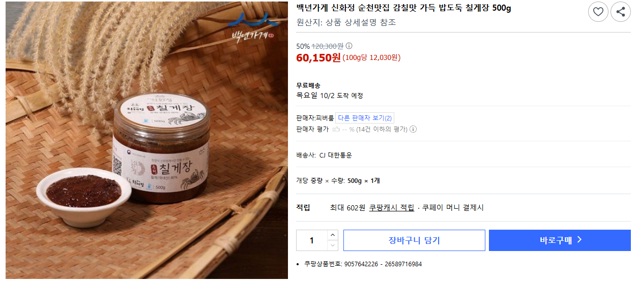 6시내고향 칠게장 택배 주문 게장집 순천 신화정
