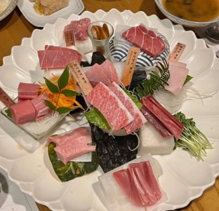 해체 쇼 역시 이곳의 주요 볼거리 중 하나입니다. 손님이 예약하고 도착하면, 명인은 직접 눈앞에서 참치를 해체하며 각 부위에 대한 설명을 덧붙입니다. 단순한 식사가 아닌, 참치에 대한 이해와 감상을 함께 경험할 수 있는 시간입니다. 참치 해체가 처음인 손님들에게는 그 자체로 깊은 인상을 남기며, 재방문으로 이어지곤 합니다.