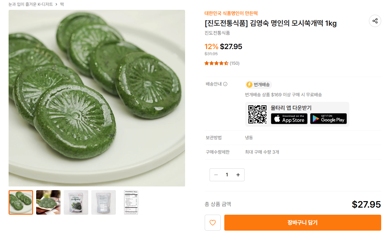 피디로그 김영숙 명인 모시쑥개떡 택배 아래쪽에서 주문하세요