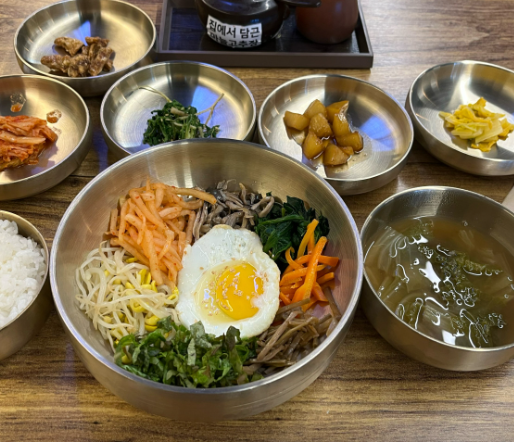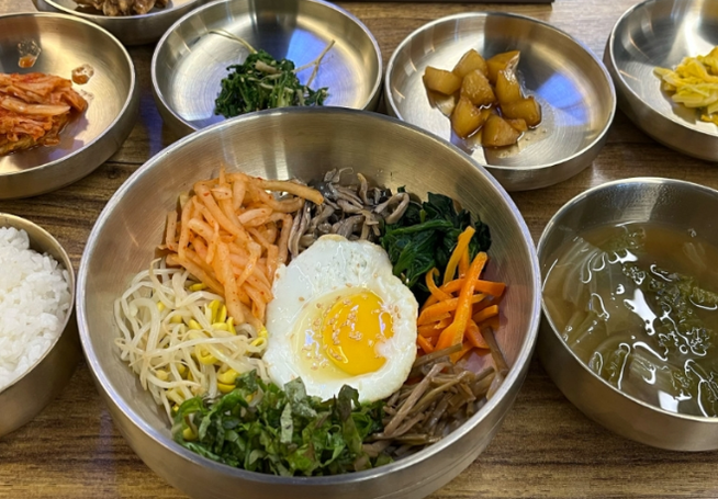 이곳의 비빔밥은 단순히 밥 위에 나물을 얹은 음식이 아닙니다. 흙과 땀, 그리고 시간과 정성이 어우러진 한 그릇의 자연입니다. 밭에서 갓 따온 쑥갓의 향, 데친 고사리의 고소함, 삶은 시금치의 부드러움이 한데 어우러져 조화로운 맛을 냅니다. 그 위에 얹힌 반숙 달걀 하나가 따뜻하게 밥과 어우러질 때면, 한 숟갈의 밥 속에 계절이 녹아듭니다. 손님들은 “먹는 내내 마음이 편해진다”고 말합니다. 인공조미료나 첨가물이 들어가지 않아 식사 후에도 속이 편안합니다.