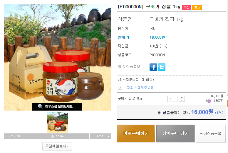 한국기행 밀양 집장 구배기된장 고추장 보리장 택배 주문 확인 하세요