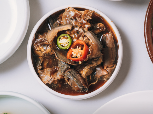그의 철칙 덕분일까, 이 집의 밥상은 언제나 정갈하고 풍성합니다. 밥상 위에는 남도의 제철 나물들이 고소한 참기름 향을 품고 오르고, 큼직하게 썰어낸 생선조림에서는 짭조름한 양념과 바다 내음이 함께 어우러집니다. 특히 ‘진석화젓’과 ‘대갱이 무침’은 요즘 찾아보기 힘든 토속 반찬으로, 순천 토박이 손님들에게는 어린 시절 어머니의 손맛을 떠올리게 하는 음식입니다.