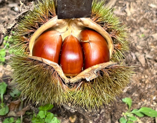 공주알밤이 특별한 이유는 우선 토양의 질과 기후 조건에 있습니다. 공주는 계룡산과 금강 사이에 자리한 분지형 지형으로, 낮에는 따뜻하고 밤에는 서늘한 일교차가 커서 밤의 당도와 탄력을 높여줍니다. 밤은 온도 변화에 따라 영양분을 저장하는 특성이 있는데, 공주의 밤은 그 차이가 커서 다른 지역보다 더 달고 단단한 과육을 가집니다. 또한 배수가 잘되는 황토 토양에서 자라 병충해가 적고, 껍질이 얇아 손질하기도 좋습니다. 이러한 자연적 조건은 인공적인 농약이나 제초제 없이도 품질 좋은 밤을 재배할 수 있는 기반이 됩니다.
