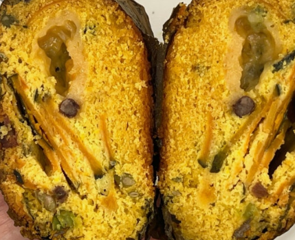 이곳의 시그니처 메뉴는 바로 연잎 단호박빵입니다. 이 빵이 얼마나 인기가 많은지, 빵 하나 사려고 멀리서도 찾아오는 손님들로 가게 앞이 늘 북적인다고 하는데요. 보통 단호박빵이라고 하면 그냥 달콤하고 부드러운 빵을 떠올리기 마련인데, 달인님의 호박빵은 차원이 다르다고 합니다