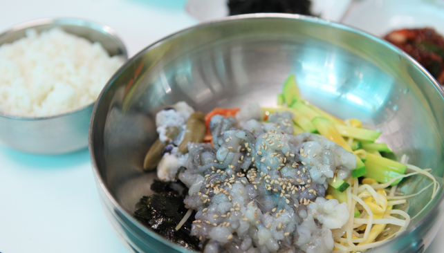이 집의 대표 메뉴는 바로 한우 육회비빔밥이라고 하는데요. 갓 지은 따끈한 밥 위에 색깔부터 고운 싱싱한 육회와 채소를 듬뿍 올리고, 고소한 참기름을 휙 둘러서 내놓는데, 손님들이 맛보고는 엄지를 안 올릴 수가 없다고 해요. 보기만 해도 군침이 돌았는데요. 또 이 육회비빔밥의 짝꿍이 있죠. 바로 선짓국입니다. 함평은 신선한 선지를 구하기 쉽다 보니 자연스럽게 선짓국을 비빔밥과 함께 먹는 식문화가 생겼다고 하는데요. 맑으면서도 깊은 맛의 선짓국이 육회비빔밥의 맛을 더욱 살려준다고 합니다.