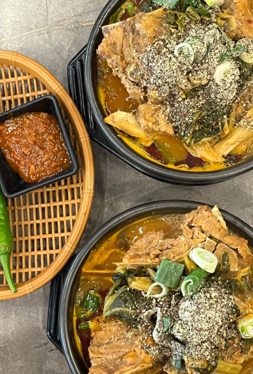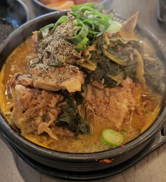 이곳의 뼈해장국은 국물부터 다릅니다. 주방 한켠의 큼지막한 가마솥에서는 하루 종일 진하게 끓여낸 국물이 뽀얗게 끓어오릅니다. 잡내 없이 구수한 향이 퍼지면, 그때부터 본격적인 조리가 시작됩니다. 국내산 등뼈를 엄선해 고아낸 육수에 시래기, 들깨, 다진 마늘을 아낌없이 넣어 한층 더 깊은 풍미를 완성합니다. 손님상에 오를 때면 커다란 뚝배기 안에 뼈가 수북이 쌓이고, 국물은 걸쭉하게 넘칠 듯 담겨 나옵니다. 한 숟갈 뜨는 순간 들깨의 고소함과 국물의 진한 감칠맛이 입안 가득 퍼져, 자연스레 밥 한 공기를 비워내게 됩니다.