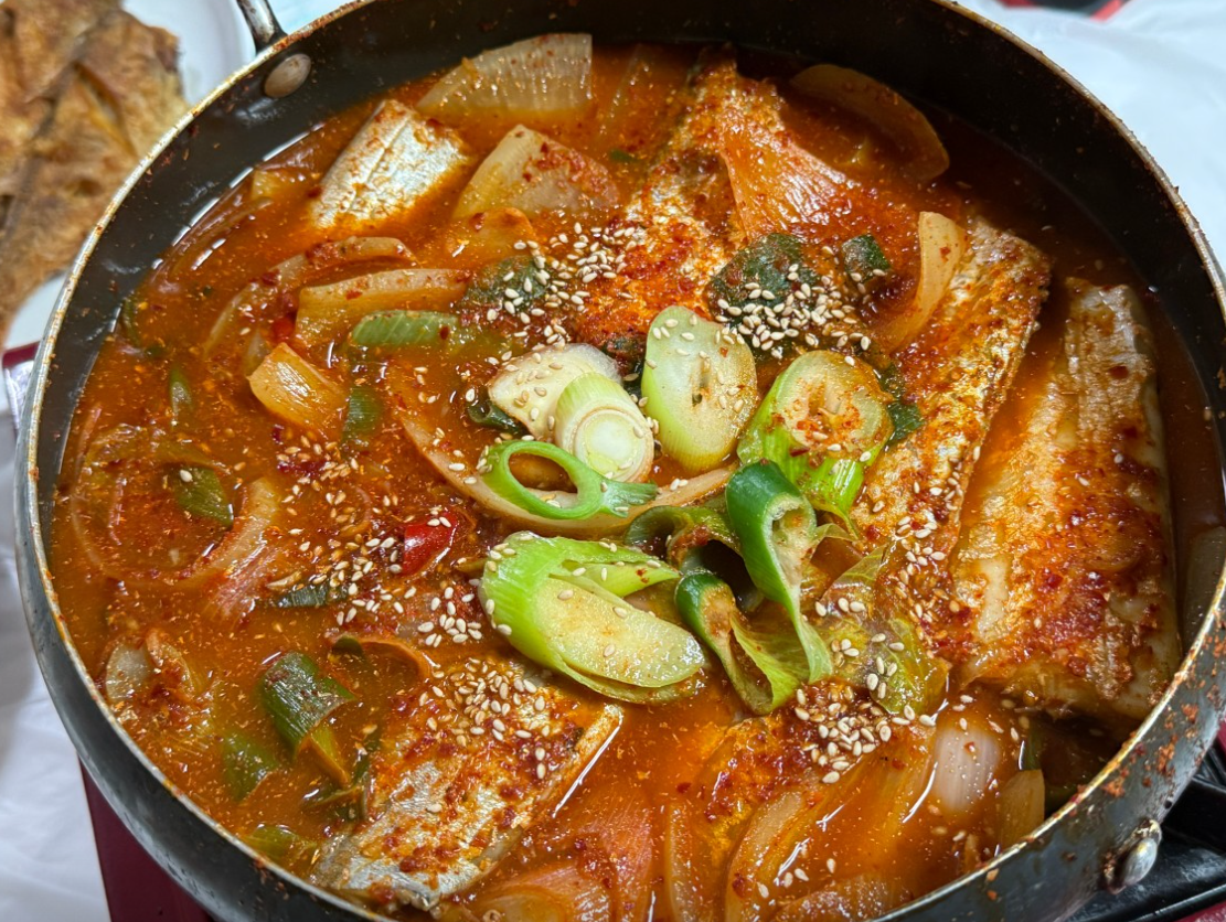 국물이 자작하게 졸아들며 무가 속까지 양념을 머금으면, 비로소 먹갈치조림이 완성됩니다. 살짝 매콤하면서도 달큰한 맛이 어우러져 밥 한 공기를 뚝딱 비워내는 건 순식간입니다. 갈치 살은 젓가락으로 살짝만 건드려도 부드럽게 떨어져 나오고, 입안에서는 고소함과 단맛이 퍼집니다. 그야말로 밥도둑이라는 표현이 딱 어울리는 맛입니다.