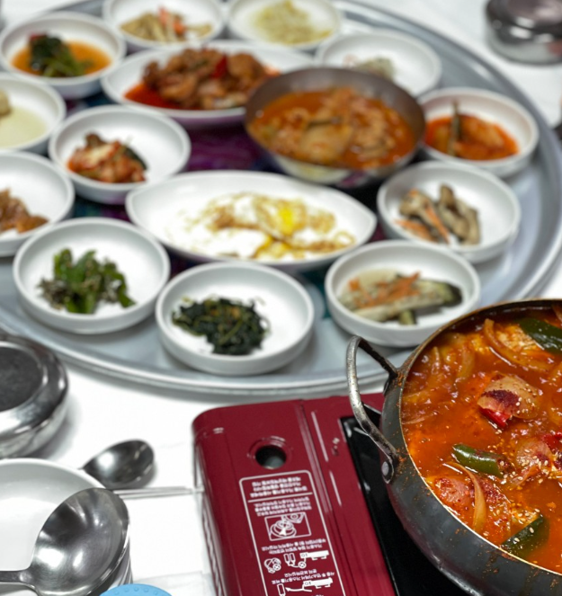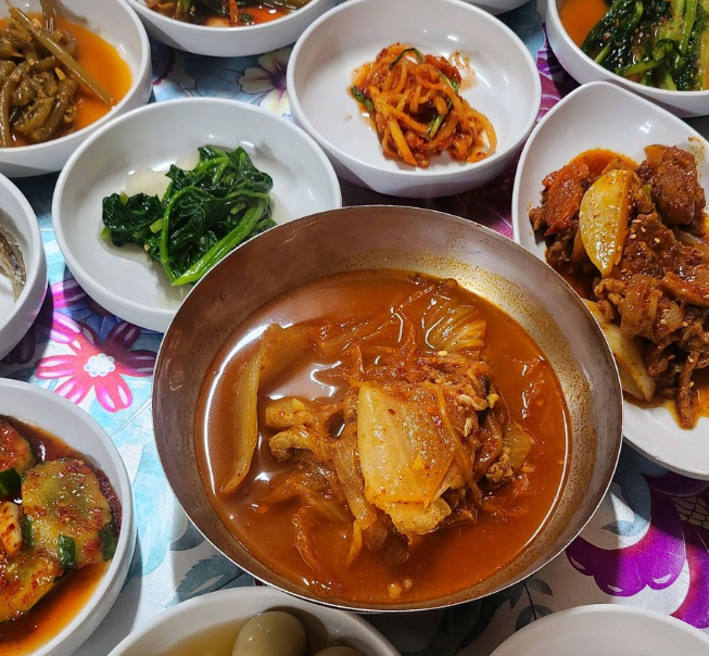하지만 이 집의 매력은 여기서 끝이 아닙니다. 먹갈치조림과 함께 차려지는 한상차림은 남도의 인심을 그대로 보여줍니다. 상다리가 휘어질 정도로 푸짐하게 차려지는 밑반찬은 기본이 열 가지가 넘습니다. 김이 모락모락 나는 밥과 함께 나오는 김치, 시금치나물, 고사리, 멸치볶음, 무생채, 그리고 제철 나물무침까지 — 모두 할머니가 직접 손으로 만든 반찬들입니다. 기계나 대량 생산이 아닌, ‘집밥의 온기’를 그대로 담아낸 한 끼라 할 수 있습니다.