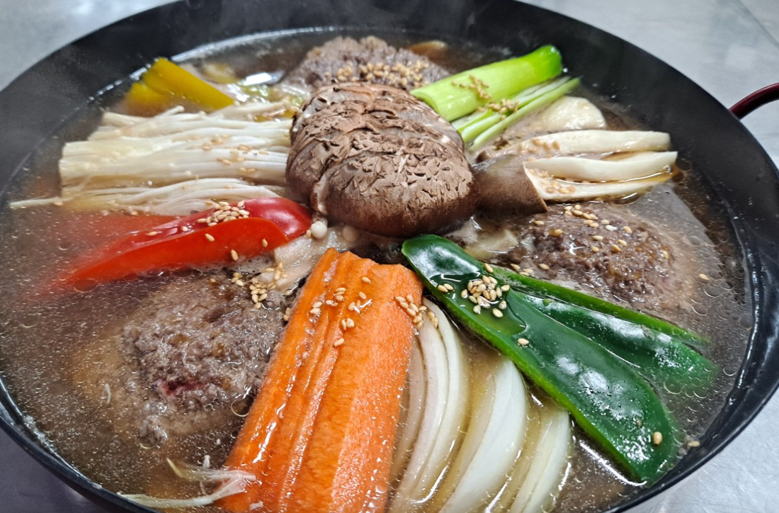 이 집의 대표 메뉴는 단연 떡갈비입니다. 1등급 국내산 한우만을 사용해 곱게 다진 뒤, 참나무 숯불 위에서 정성스럽게 구워냅니다. 겉은 은은하게 캐러멜라이징되어 달콤한 풍미가 감돌고, 속은 촉촉한 육즙이 살아 있어 부드럽고 쫄깃한 식감을 자랑합니다. 자극적이지 않고 담백하면서도 은근히 중독성 있는 맛은, 남녀노소 누구나 부담 없이 즐길 수 있는 건강한 한식의 정수를 보여줍니다. 흔히 생각하는 달짝지근하고 짭조름한 떡갈비와는 달리, 고기 본연의 맛을 살린 담백함이 특징입니다.