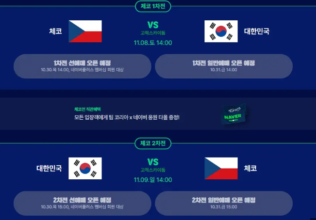 체코11월 9일 (일) 오후 2시서울 고척 스카이돔MBC, SBS TV 생중계