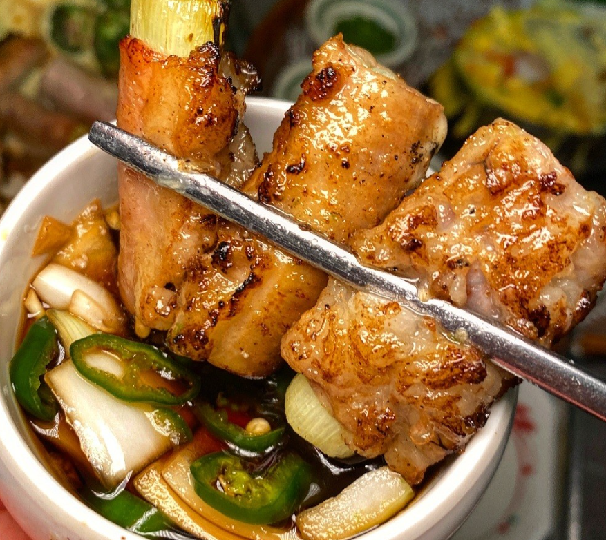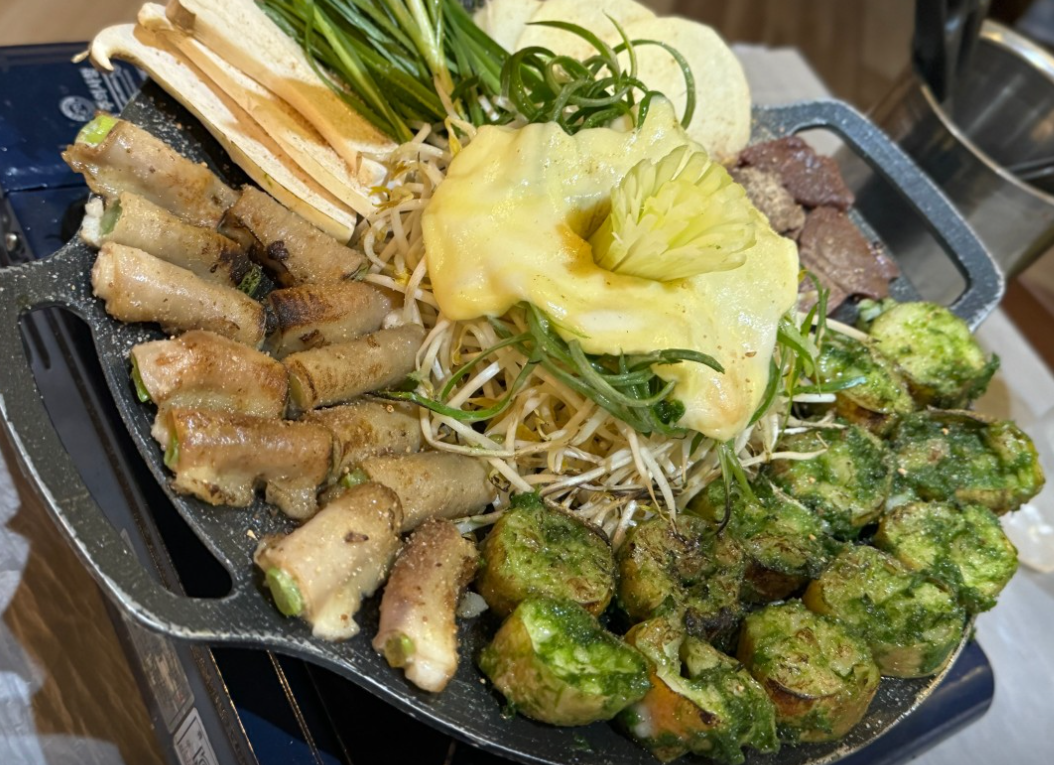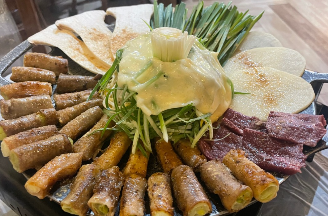 이 집의 대표 메뉴는 ‘대파 곱창 모둠 구이’입니다. 테이블 위 불판에 곱창과 대파가 한가득 올려지고, 지글지글 익어가며 퍼지는 고소한 향이 먼저 사람의 마음을 사로잡습니다. 불이 닿을수록 대파는 단맛을 내며 구수한 향을 풍기고, 곱창은 바삭하면서도 속은 촉촉하게 익습니다. 입안에 넣으면 처음에는 부드럽고, 씹을수록 고소한 기름이 배어나오면서 깊은 풍미가 퍼집니다. 여기에 특제 양념소스를 곁들이면 느끼함은 전혀 없이 감칠맛이 더해집니다.