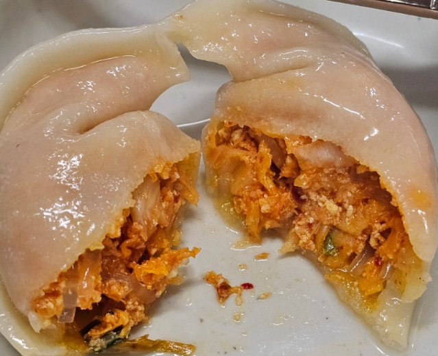 이곳의 김치만두는 크기가 크고 속이 알찼습니다. 아삭한 김치의 매콤함이 고기와 어우러져 감칠맛을 냈고, 만두피는 얇지만 쫀득한 식감이 살아 있었습니다. 김치는 단순히 매운맛을 위한 재료가 아니라, 숙성과 수분 조절을 통해 만두 속의 밸런스를 완성하는 핵심이었습니다. 김치의 산미가 돼지고기의 느끼함을 잡아주었고, 김치·두부·당면·파·마늘이 어우러져 풍성한 맛을 냈습니다.