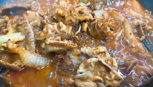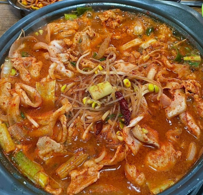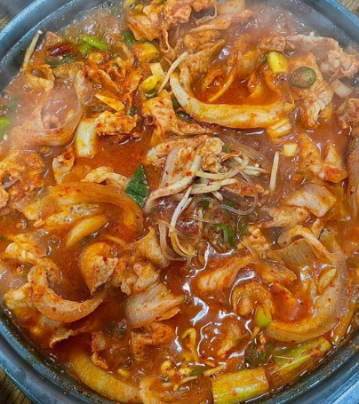 이때 불판이 한껏 달아오른 상태에서 고기가 구워지기 때문에 특유의 불향이 살아납니다. 여기에 고추기름이 더해져 매운 향이 코끝을 자극하고, 마지막에는 육수를 부어 전골처럼 즐길 수 있어 볶음과 찌개의 경계를 허무는 메뉴로 사랑받고 있습니다.매운 정도는 주문 시 조절 가능해 ‘아주 매운맛’을 선택하는 손님도 많습니다. 매운 음식을 좋아하는 사람이라면 땀을 뻘뻘 흘리면서도 숟가락을 놓지 못할 정도로 매력적인 맛이라고 합니다.